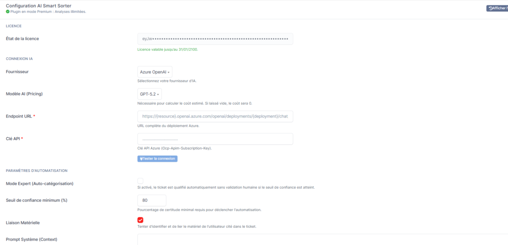 D’autre part, AI Smart Sorter n’est pas une solution « boîte noire ». Il offre un contrôle total sur le comportement de l’IA via un prompt système personnalisable. Par exemple, vous pouvez adapter la logique de tri à vos processus métiers. Enfin, le plugin intègre un calcul précis des coûts (tokens) pour une maîtrise budgétaire totale.